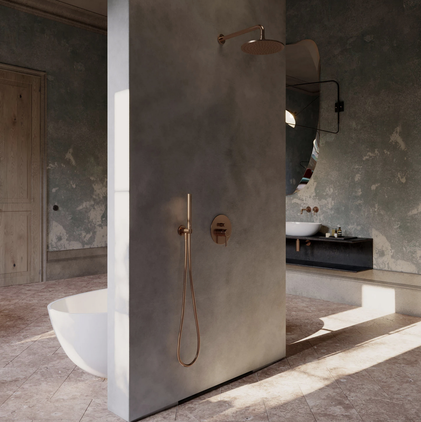 Miedź szczotkowana jest szlachetnym wykończeniem w odcieniu czerwonego złota i satynowej, szczotkowanej powierzchni. Powłoka została wykonana w zaawansowanej technologii PVD, która gwarantuje najwyższą trwałość, zapewniając jednocześnie łatwość w czyszczeniu.