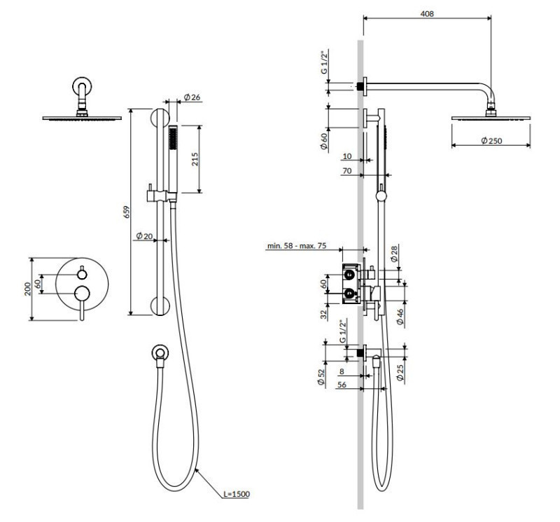 Omnires system prysznicowy podtynkowy, 2-wyjściowy