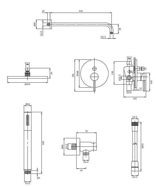 Bateria wannowa podtynkowa: Y Y1235 NI