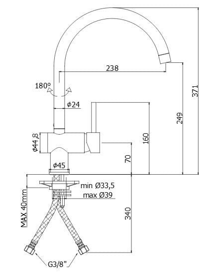 Bateria włoskiego producenta Paffoni z serii LIGHT.