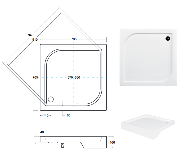 Brodzik w komplecie z obudową stałą,