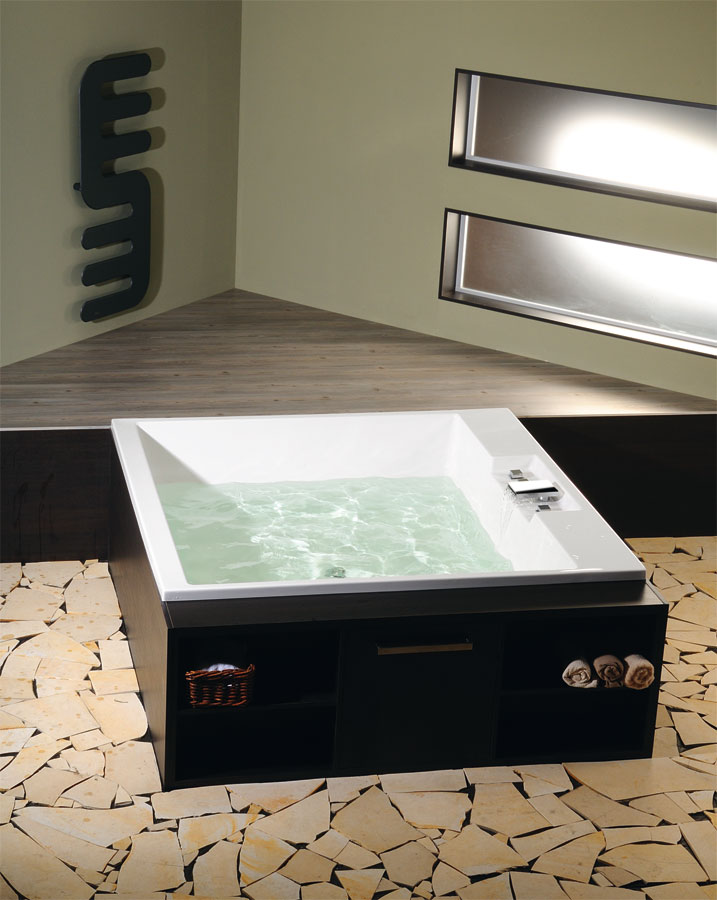 Wanna CAME z jej wymiarami 175 x 175 cm, jest przeznaczona do dużych łazienek. Przestrzeń wewnętrzna wanny umożliwia komfortową kąpiel 4 osób jednocześnie, co jest idealne do wspólnych chwil relaksu z rodziną.