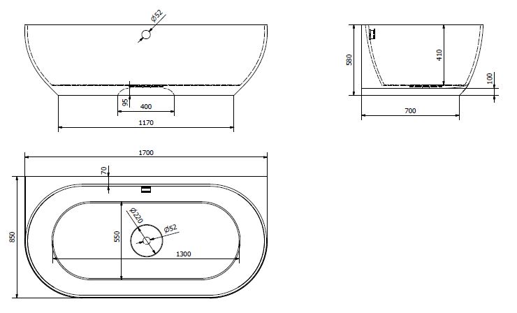 Wąska krawędź wanny zapewnia przestrzeń wewnętrzną porównywalną z klasycznymi wannami o długości 170 cm.