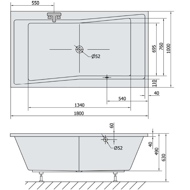 Do kompletowania z nogami oraz syfonem o minimalnej długości 1175 mm.