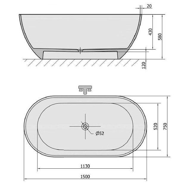 Wanna jest odlewana w jednym kawałku, a jej waga 150 kg zapewnia całej powłoce najwyższą możliwą stabilność.