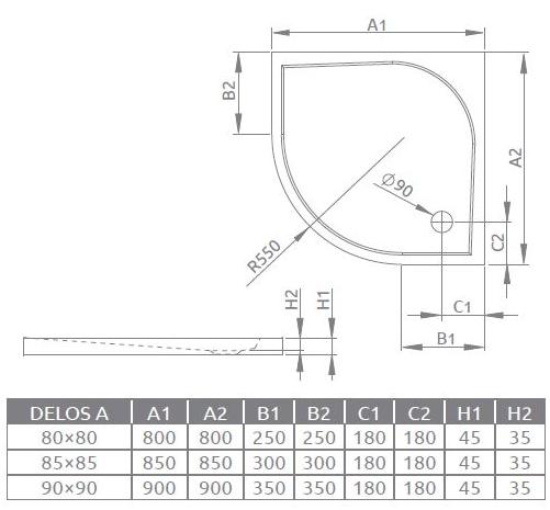 Seria brodzików akrylowych Delos przeznaczona jest do montażu bezpośrednio na podłodze. W skład serii wchodzą brodzik półokrągły i brodzik kwadratowy.