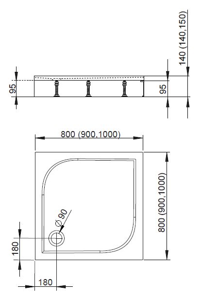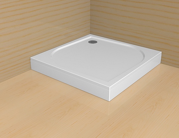 Brodzik kwadratowy ze zdejmowaną obudową, z otworem na syfon o średnicy 90 mm, w komplecie z nóżkami. Zalecany syfon TB 90P.