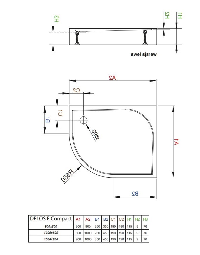 Radaway Delos E Compact półokrągły, asymetryczny brodzik akrylowy