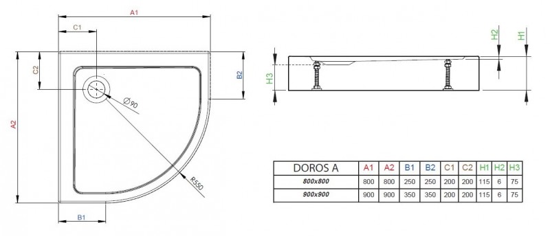 Brodziki ze zintegrowaną obudową i nóżkami :