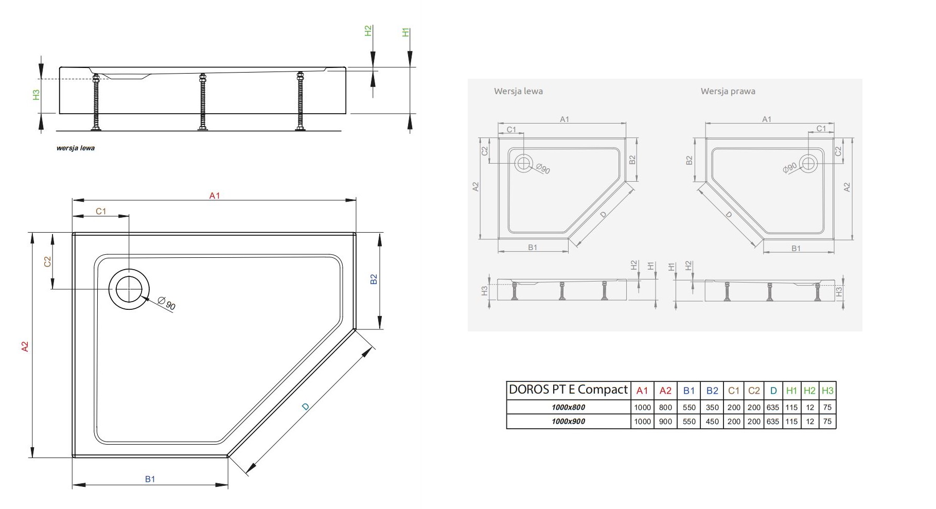 Doros PT Compact Stone Brodzik pentagonalny asymetryczny: