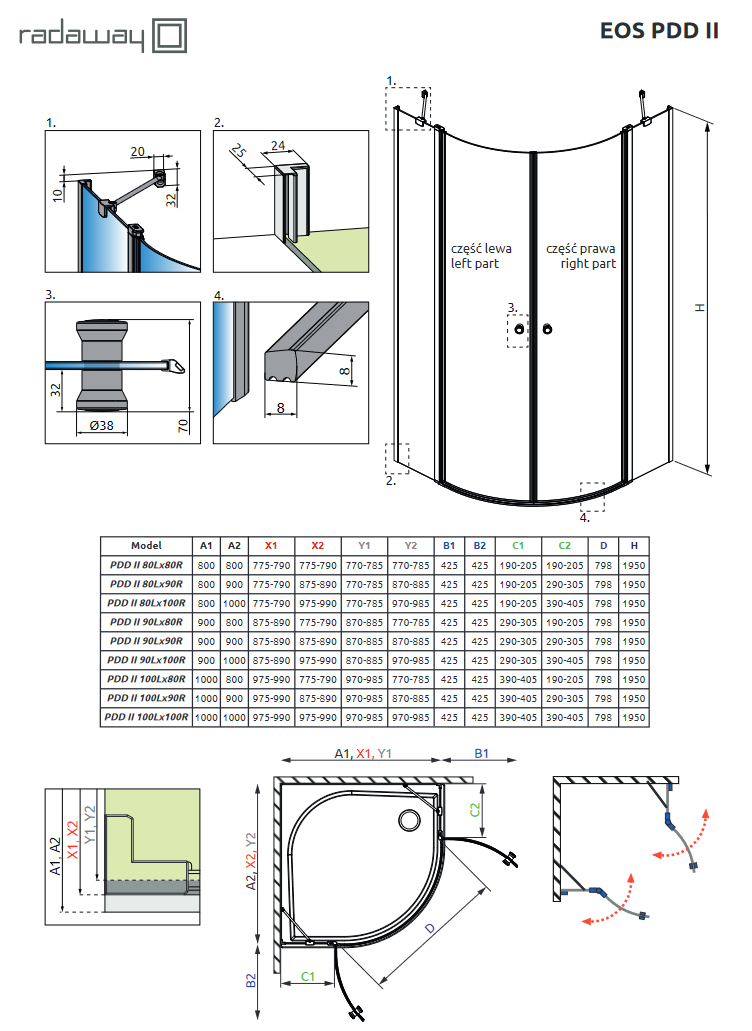 Opinie o: Radaway Eos PDD II kabina półokrągła asymetryczna 80Lx100R drzwi wahadłowe chrom przeźroczyste Easy Clean 13799470-01L + 13799472-01R