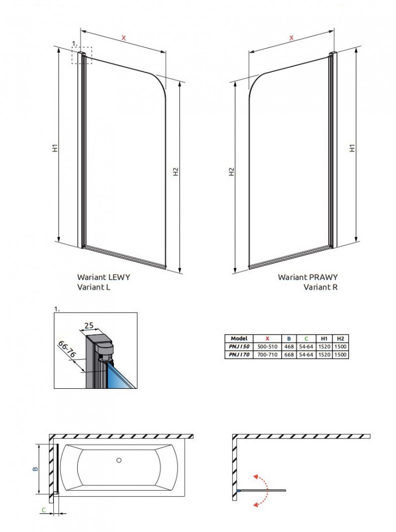 • Zawias rurowy – umożliwia otwieranie drzwi do wewnątrz i na zewnątrz kabiny