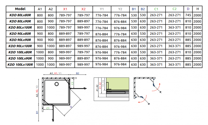 UWAGA! Standardowo kabiny dopasowane są do montażu na brodziku o określonych wymiarach i właśnie te wymiary są podane w nazwie kabiny lub jej części. Rzeczywiste wymiary gabarytowe kabiny są nieco mniejsze od nominalnych podanych w nazwie artykułu. Jeśli planujesz montaż kabiny bezpośrednio na posadzce, zwróć uwagę na wymiary gabarytowe (X1, X2) oraz wymiary do osi szyby (Y1, Y2), które podane są na rysunku technicznym.