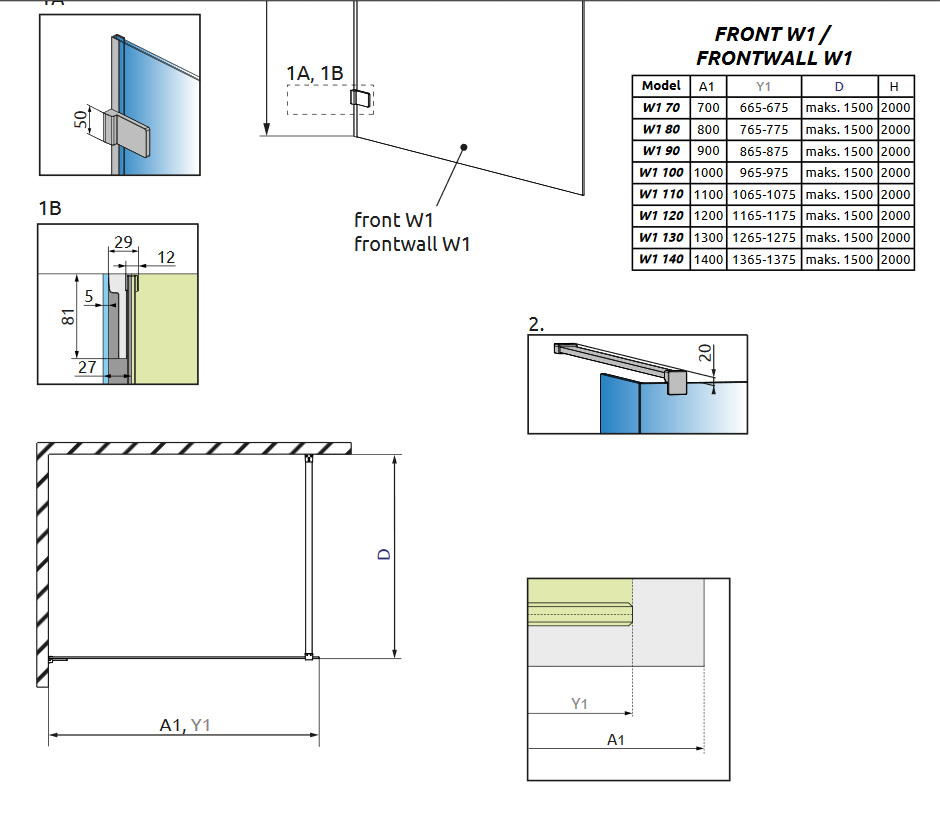 Serię tworzą duże tafle hartowanego szkła o grubości 8mm, które umocowane są na mosiężnych stabilizatorach, zapewniających solidną konstrukcję kabiny.