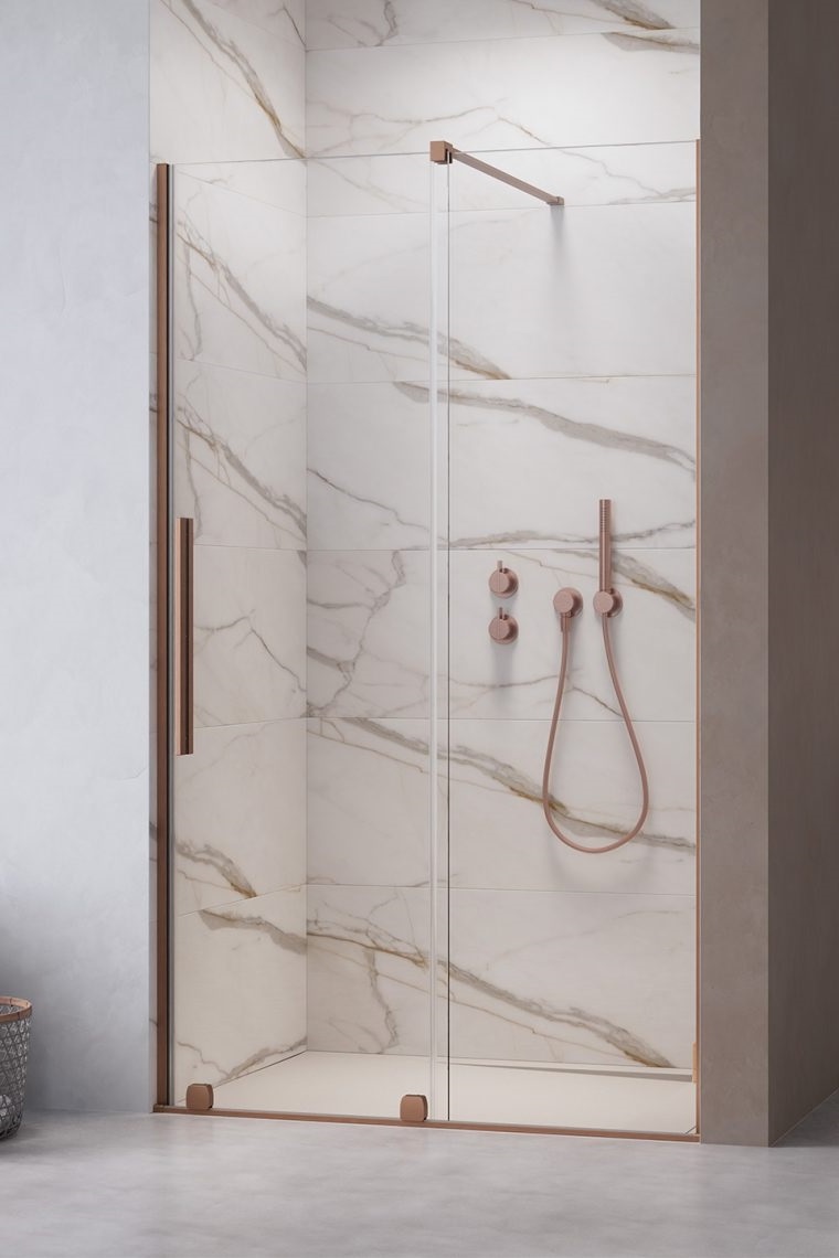 Wyrafinowane, proste wzornictwo serii Furo podkreślane jest przez nowy, modny kolor szczotkowanej miedzi. Wykończone są nim profile, wsporniki i uchwyty. Głęboki odcień z satynową poświatą dodaje kabinom ponadczasowej szlachetności. Kabiny Furo to doskonały wybór do aranżacji w duchu retro i loft, ale też projektów z jednej strony pełnych elegancji, a z drugiej – bliskich naturze.