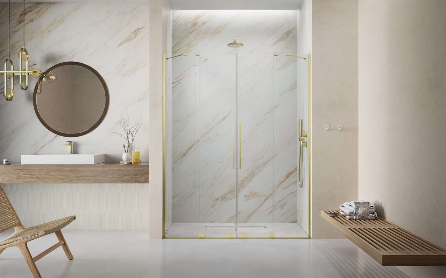 Wyrafinowane, proste wzornictwo serii Furo podkreślane jest przez nowy, modny kolor szczotkowanego złota. Wykończone są nim profile, wsporniki i uchwyty. Dodaje on łazience subtelnych, biżuteryjnych akcentów. Kabiny Furo to propozycja do wnętrz zaaranżowanych z kobiecą subtelnością albo… z królewskim szykiem! Znakomicie komponują się z estetyką art déco, mid-century modern, modern, classic czy glamour.