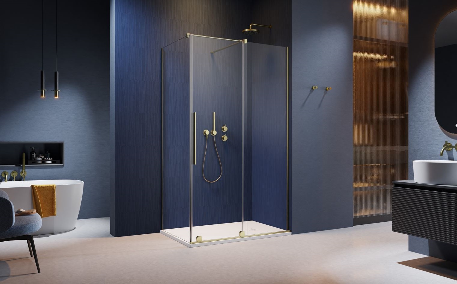 Wyrafinowane, proste wzornictwo serii Furo podkreślane jest przez nowy, modny kolor szczotkowanego złota. Wykończone są nim profile, wsporniki i uchwyty. Dodaje on łazience subtelnych, biżuteryjnych akcentów. Kabiny Furo to propozycja do wnętrz zaaranżowanych z kobiecą subtelnością albo… z królewskim szykiem! Znakomicie komponują się z estetyką art déco, mid-century modern, modern, classic czy glamour.