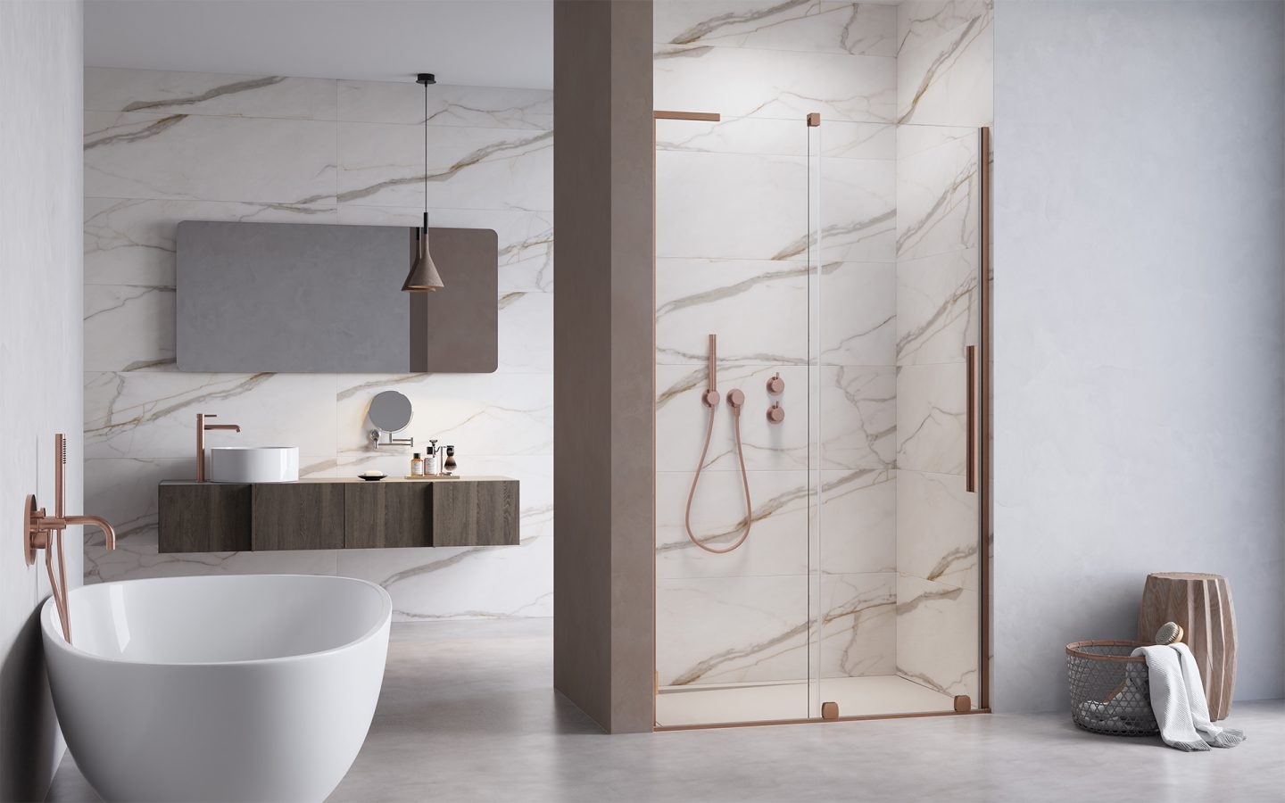 Wyrafinowane, proste wzornictwo serii Furo podkreślane jest przez nowy, modny kolor szczotkowanej miedzi. Wykończone są nim profile, wsporniki i uchwyty. Głęboki odcień z satynową poświatą dodaje kabinom ponadczasowej szlachetności. Kabiny Furo to doskonały wybór do aranżacji w duchu retro i loft, ale też projektów z jednej strony pełnych elegancji, a z drugiej – bliskich naturze.