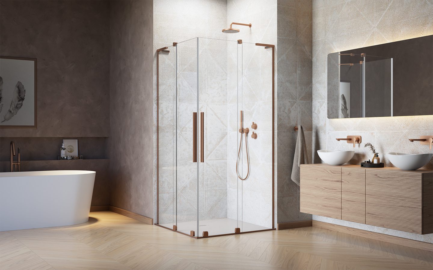 Wyrafinowane, proste wzornictwo serii Furo podkreślane jest przez nowy, modny kolor szczotkowanej miedzi. Wykończone są nim profile, wsporniki i uchwyty. Głęboki odcień z satynową poświatą dodaje kabinom ponadczasowej szlachetności. Kabiny Furo to doskonały wybór do aranżacji w duchu retro i loft, ale też projektów z jednej strony pełnych elegancji, a z drugiej – bliskich naturze.