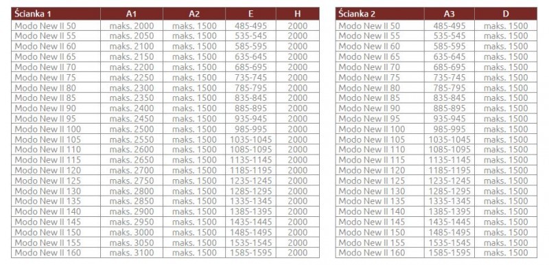 Ścianki do dowolnej konfiguracji. W celu stworzenia kabiny o dowolnych wymiarach należy skompletować dwa wybrane wymiary ścianek Modo New Black II oraz łącznika wsporników.