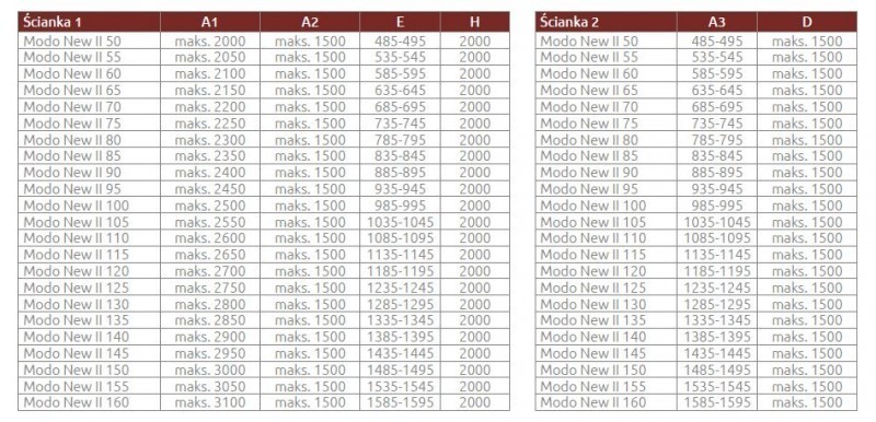 Ścianki do dowolnej konfiguracji. W celu stworzenia kabiny o dowolnych wymiarach należy skompletować dwa wybrane wymiary ścianek Modo New Black II oraz łącznika wsporników.