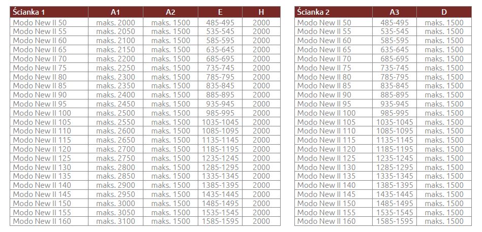 Ścianki do dowolnej konfiguracji. W celu stworzenia kabiny o dowolnych wymiarach należy skompletować dwa wybrane wymiary ścianek Modo New Black II oraz łącznika wsporników.