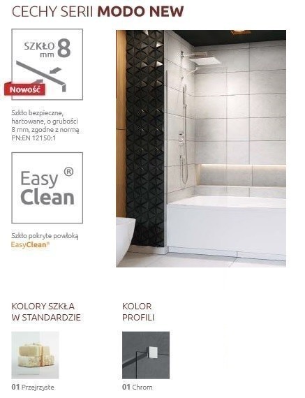 Parawany z serii Modo New zostały stworzone z myślą o najnowszych trendach w projektowaniu łazienek. Wszystkie modele wykonane są z dbałością o najdrobniejsze szczegóły, tak aby komfort z ich posiadania towarzyszył Państwu każdego dnia.