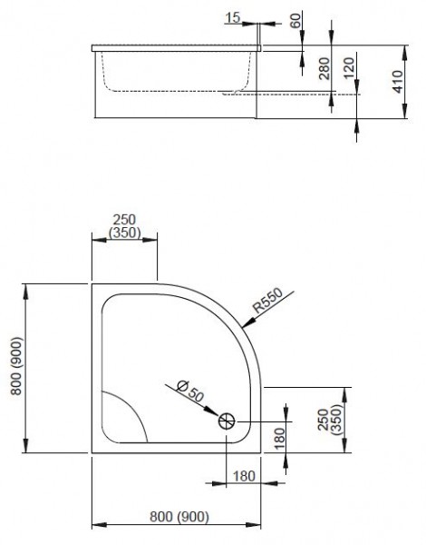 Brodzik głęboki na podstawie styropianowej (do obudowania płytkami) z otworem na syfon o średnicy 50mm, zalecane syfony TB 50P, 578P.