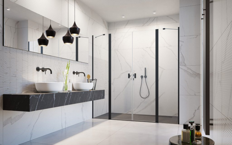 Możliwość zamówienia drzwi w różnych kombinacjach rozmiarów skrzydeł drzwi i ścianek, w zależności od sytuacji w łazience.