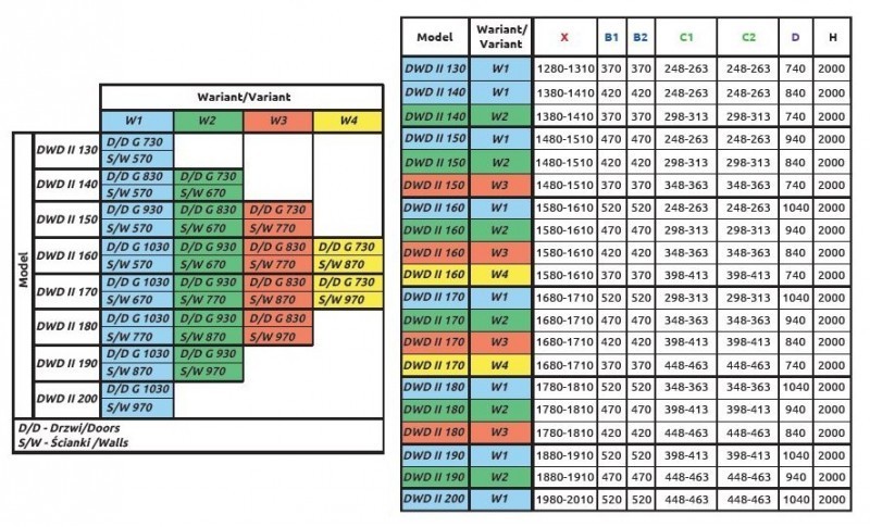 Drzwi składają się z kompletu drzwi G 1030 i kompletu ścianek S 570.