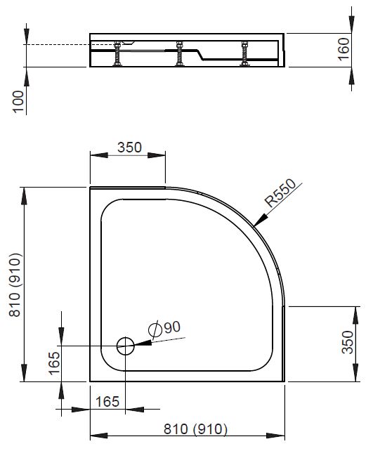 Półokrągły brodzik ze zintegrowaną obudową z otworem na syfon o średnicy 90mm, zalecany syfon TB 90P.
