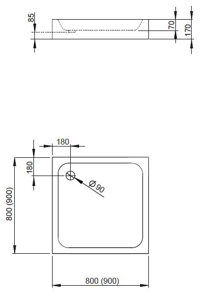 Brodzik na podstawie styropianowej ze zintegrowaną obudową, z otworem na syfon 90mm, zalecany syfon TB 90 P.