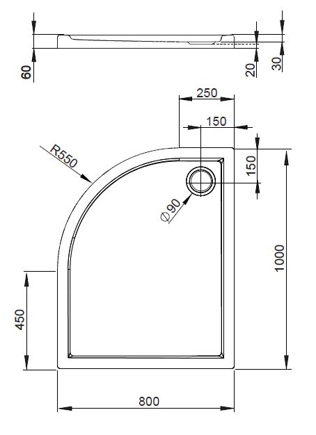 Wersja prawa brodzika, do kompletowania z kabinami półokrągłymi 100x80