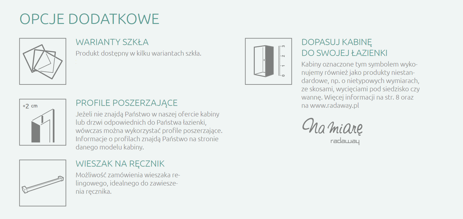 Marka Radaway to znany i ceniony producent wysokiej jakości komfortowych kabin prysznicowych odznaczających się ciekawym wzornictwem oraz precyzją wykonania. Marka jest obecna na rynku nieprzerwanie od 2002 roku, stale poszerzając swój asortyment o rozwiązania podnoszące funkcjonalność kabin prysznicowych i natryskowych. Wieloletnie doświadczenie marki sprawia, że Radaway doskonale wpisuje się w potrzeby i oczekiwania Klientów urządzających łazienki.
