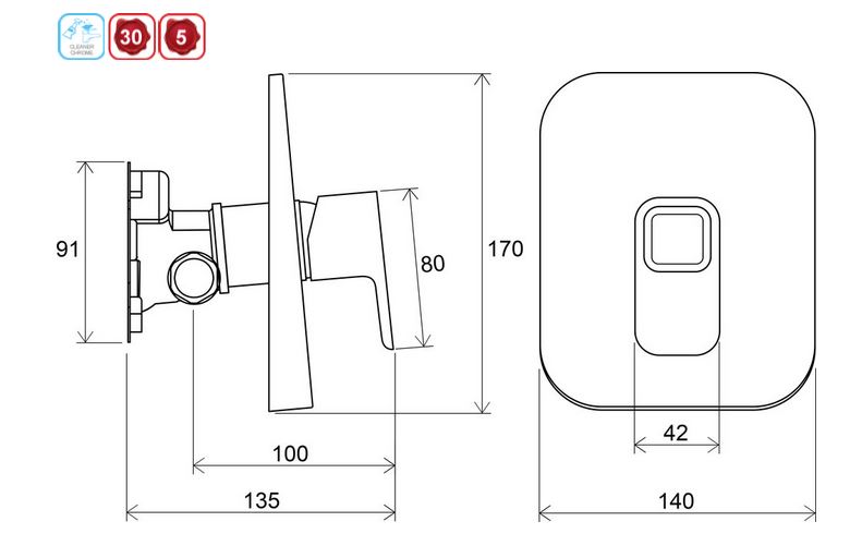 Dla uzyskania doskonale skomponowanej łazienki zalecamy łączenie baterii 10° z innymi produktami z konceptu 10° i akcesoriami RAVAK. Do czyszczenia baterii rekomendujemy środek RAVAK Cleaner Chrome. Uniwersalny system R-box zabudowany w kasecie z tworzywa sztucznego chroni wewnętrzne elementy baterii zainstalowane w ścianie, umożliwiając lepsze przygotowanie pionowych płaszczyzn i ułatwiając pracę glazurnikom. System pozwala na instalację zewnętrznych elementów baterii już po zakończeniu prac budowlanych, unikając w ten sposób porysowania i uszkodzenia baterii. R-box upraszcza i przyspiesza osadzenie baterii podtynkowej, jednocześnie gwarantując precyzyjną i czystą instalację. Opakowanie R-box zawiera materiał do mocowania w ścianie, nie zawiera materiałów do podłączenia doprowadzenia wody. Po usunięciu górnej osłony R-box system utrzymuje dopływ wody w łazience, dzięki czemu możliwe jest sprawdzenie szczelności systemu.