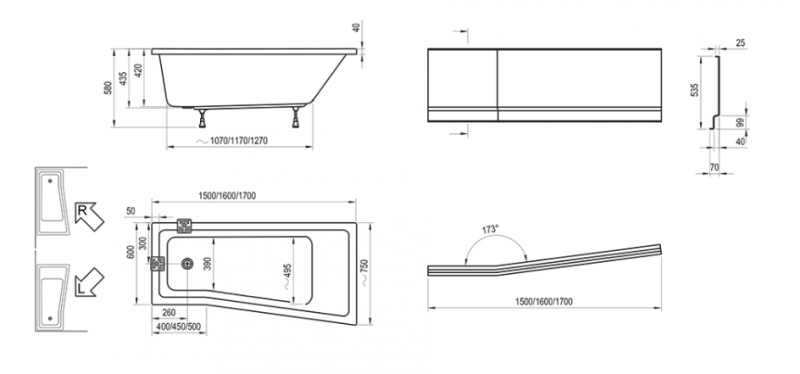 Do wanny BeHappy II zalecamy dokupienie wannowego kompletu odpływowego o długości 570 mm. Instalując parawan nawannowy VS3, stanie się z wanny praktyczną przestrzenią prysznicową. Parawan nawannowy VS3 100 jest odpowiedni do wanien BeHappy II w rozmiarze 150 i 160 cm, a VS3 115 do wanien BeHappy II o rozmiarze 170 cm.