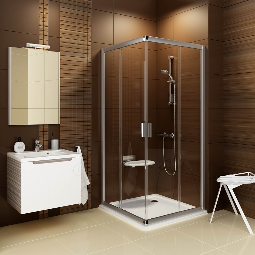 Montaż w obłożonym płytką rogu łazienki na brodzikach RAVAK ANGELA, ANGELA BASIC, PERSEUS, PERSEUS PRO, PERSEUS PRO FLAT, PERSEUS PRO CHROME, GIGANT PRO, GIGANT PRO FLAT, GIGANT PRO CHROME lub bezpośrednio na podłodze z wbudowanym odpływem liniowym czy kratką odpływową. Zastosowanie profilu poszerzającego BLNPS o szerokości 26 mm umożliwia rozszerzenie kabiny maksymalnie o 4 cm na każdej stronie. Kabinę prysznicową można również zamówić na miarę. Opakowanie zawiera 1 sztukę produktu. Kompletując kabinę narożną należy zamówić 2 element