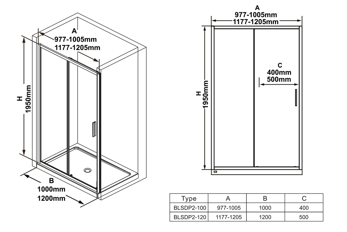 Produkt tworzy jeden element stały i jeden przesuwny tworzący drzwi. Montaż w obłożonej płytką wnęce lub w rogu łazienki (po połączeniu ze ścianką BLSPS) na brodzikach RAVAK PERSEUS, PERSEUS PRO, PERSEUS PRO FLAT, PERSEUS PRO CHROME, GIGANT PRO, GIGANT PRO FLAT, GIGANT PRO CHROME lub bezpośrednio na podłodze z wbudowanym odpływem liniowym czy kratką odpływową.