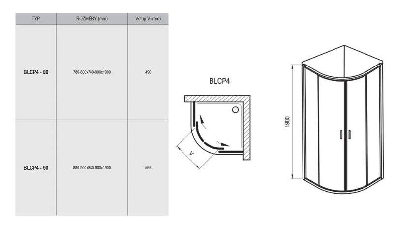 Produkt tworzą dwa elementy stałe i dwa ruchome tworzące przesuwne drzwi. Montaż w obłożonym płytką rogu łazienki na brodzikach RAVAK RONDA, RONDA BASIC, ELIPSO, ELIPSO PRO, ELIPSO PRO FLAT, ELIPSO PRO CHROME lub bezpośrednio na podłodze z wbudowanym odpływem liniowym czy kratką odpływową. Kabinę prysznicową można również zamówić na miarę. Promień 500 mm.
