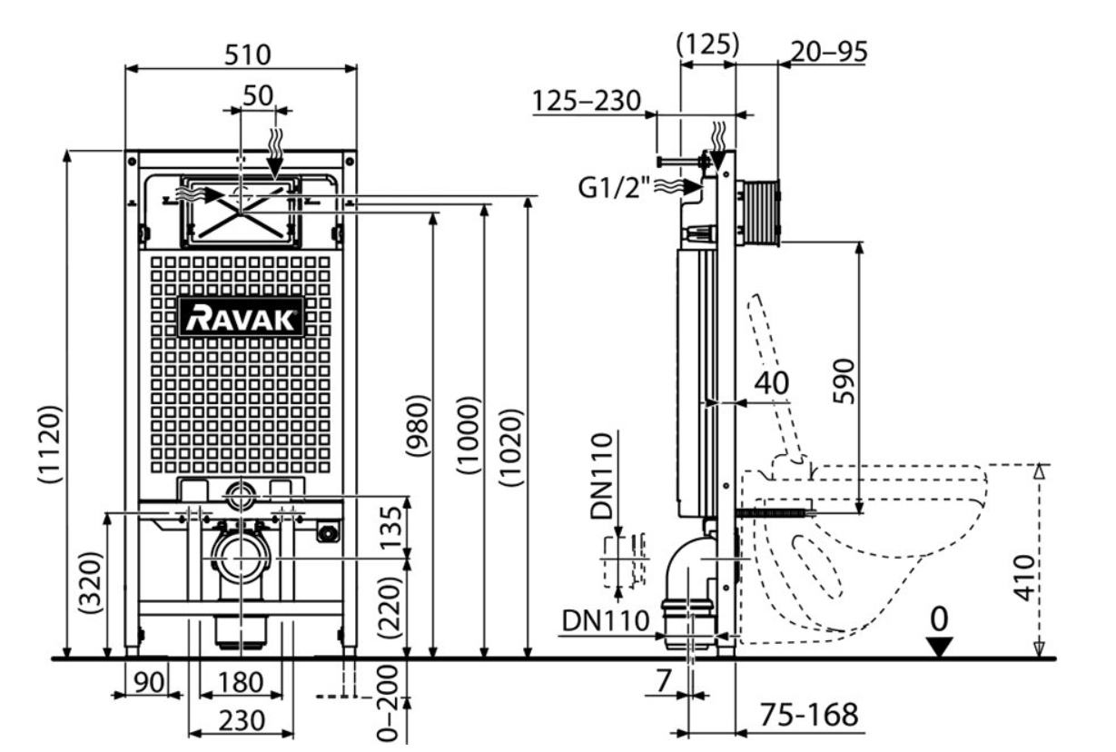 Ramowy moduł instalacyjny G II/1120 do podwieszanego WC jest zalecany do konstrukcji z karton-gipsu. Solidna konstrukcja modułu instalacyjnego zapewnia dużą nośność , a pełna polistyrenowa izolacja zapobiega kondensacji pary wodnej. Elementem produktu jest płyta izolacyjna do WC. Pojemność pojemnika wynosi 9 l. Ekonomicznie regulowane podwójne spłukiwanie. Małe spłukiwanie jest możliwe w zakresie 2,5-3,5 l. Napełnianie wodą jest prawie niesłyszalne.