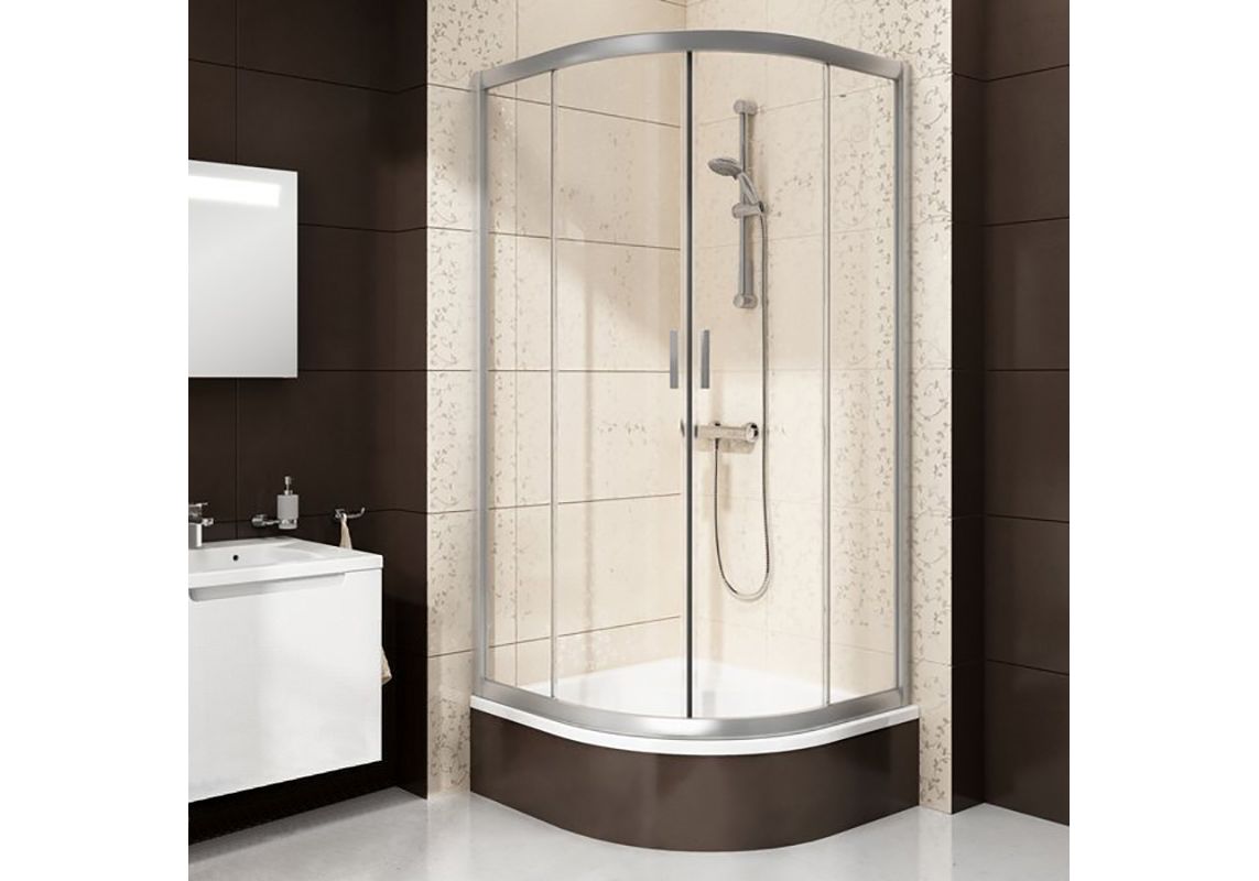 Obniżona półokrągła kabina prysznicowa Blix ma wysokość tylko 1750 mm i została przygotowana do instalacji na głębokim brodziku Sabina. To rozwiązanie jest unikalną propozycją do łazienek, w których nie ma miejsca na wannę. Akrylowy brodzik o głebokości 27 cm zapewni dostateczne miejsce do kąpieli dzieci, relaks na siedzisku pod prysznicem lub np. namoczenie prania. Kabina prysznicowa Blix z przesuwnym systemem otwierania wyróznia się techniczną doskonałością i modnym designem opartym na błyszczących profilach i efektownych taflach bezpiecznego szkłą. Montaż w obłożonym płytką rogu łazienki na głębokim brodziku Sabina.