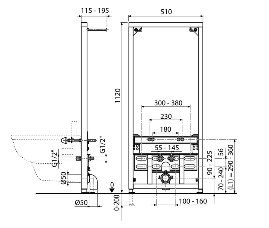 Do montażu przed ścianą nością lub do zabudowy karton-gipsem.