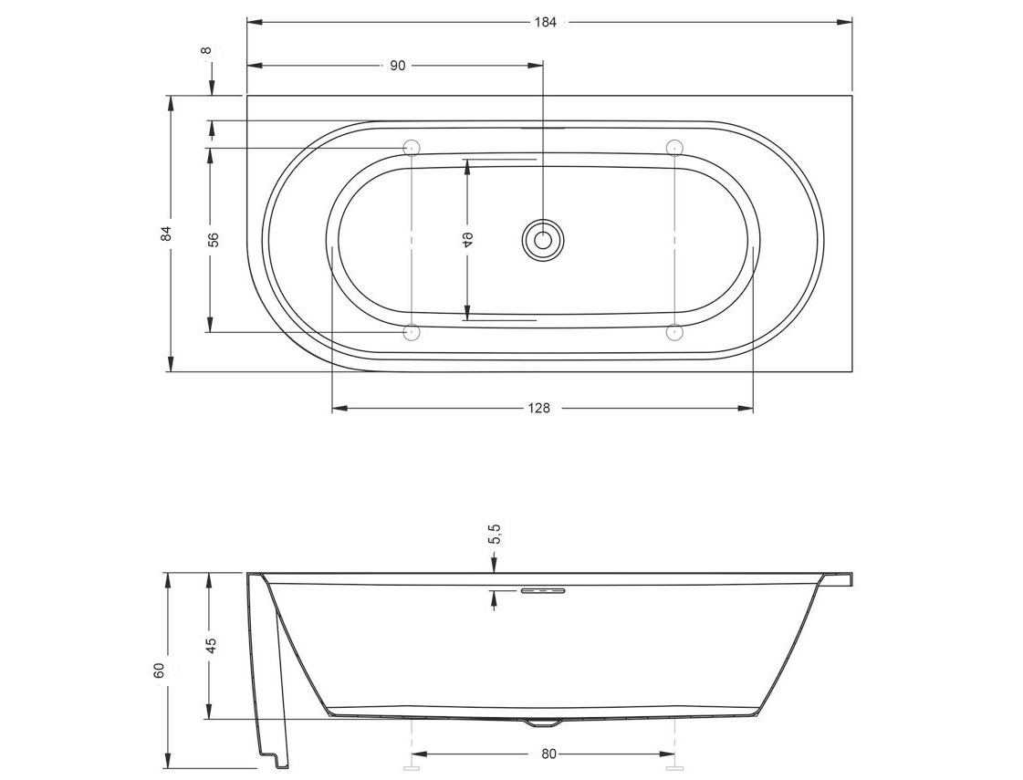 Rama ze stali nierdzewnej z regulowanymi nogami gwarantuje stabilną i precyzyjną instalację. Do wanny dołączony jest syfon klik-klak i nogi.