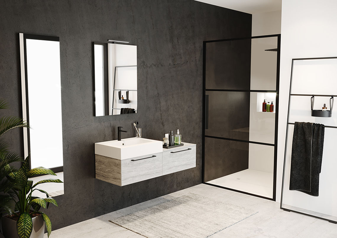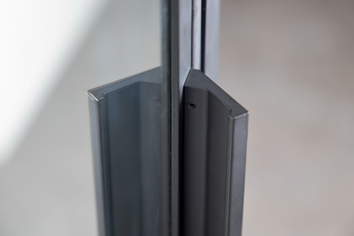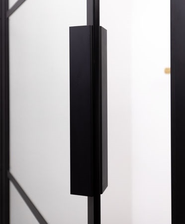 Seria kabin GRID to przede wszystkim czarne, matowe profile wykonane z malowanego proszkowo aluminium, które przymocowano po zewnętrznej stronie szkła. Takie rozwiązanie, wraz ze starannie dopracowanymi detalami: masywnymi uchwytami, widocznymi śrubami czy solidnymi wspornikami, zapewnia kabinom GRID 100% loftowego charakteru.