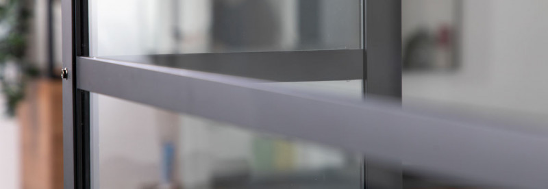 Seria kabin GRID to przede wszystkim czarne, matowe profile wykonane z malowanego proszkowo aluminium, które przymocowano po zewnętrznej stronie szkła. Takie rozwiązanie, wraz ze starannie dopracowanymi detalami: masywnymi uchwytami, widocznymi śrubami czy solidnymi wspornikami, zapewnia kabinom GRID 100% loftowego charakteru.