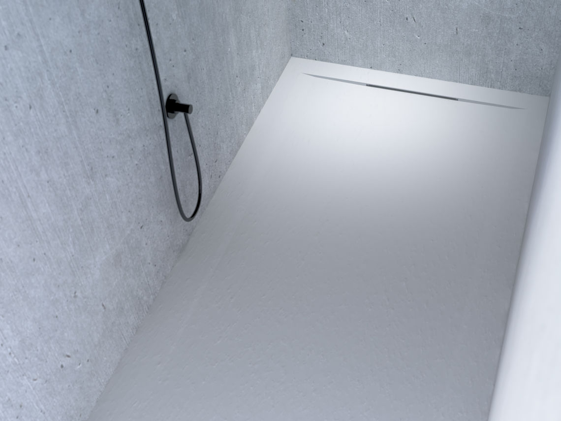 Brodzik Isola zachwyca matową powierzchnią o strukturze imitującej kamień. Jego nieregularna faktura, poza wrażeniami estetycznymi, zapewnia także lepsze właściwości antypoślizgowe.