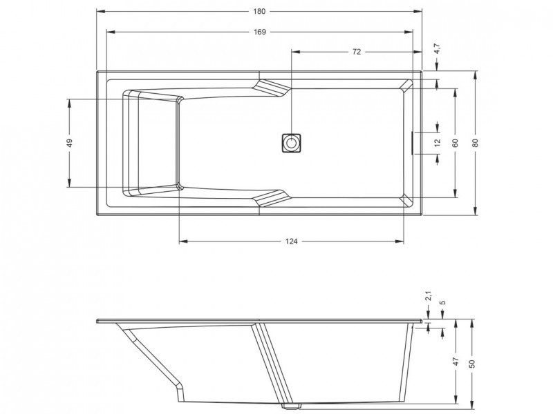 RIHO STILL SHOWER - Prostokątna wanna do zabudowy ze strefą prysznicową. Przelew z chromowanym wykończeniem. Odpływ z pasującą kwadratową pokrywką i syfonem klik-klak w komplecie. Stałe elementy wyposażenia wanny, takie jak odpływ i przelew, pełnią tutaj dodatkową funkcję dekoracyjną Niski rant wanny - tylko 2 cm!