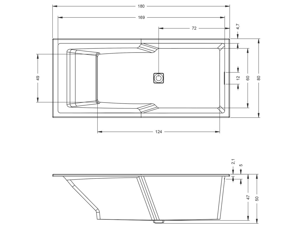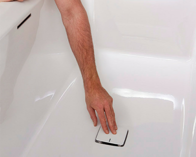 RIHO STILL SHOWER - Prostokątna wanna do zabudowy ze strefą prysznicową. Przelew z chromowanym wykończeniem. Odpływ z pasującą kwadratową pokrywką i syfonem klik-klak w komplecie. Stałe elementy wyposażenia wanny, takie jak odpływ i przelew, pełnią tutaj dodatkową funkcję dekoracyjną Niski rant wanny - tylko 2 cm!