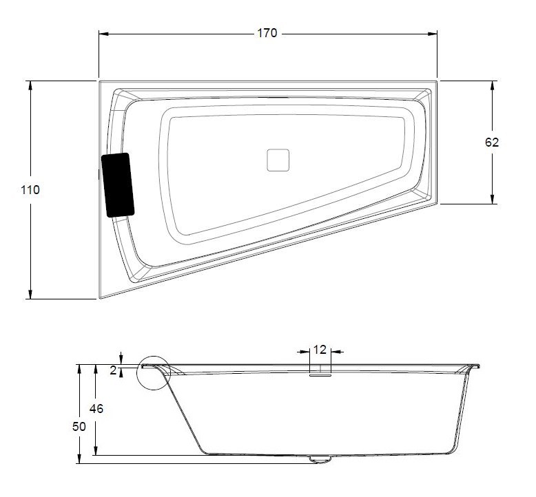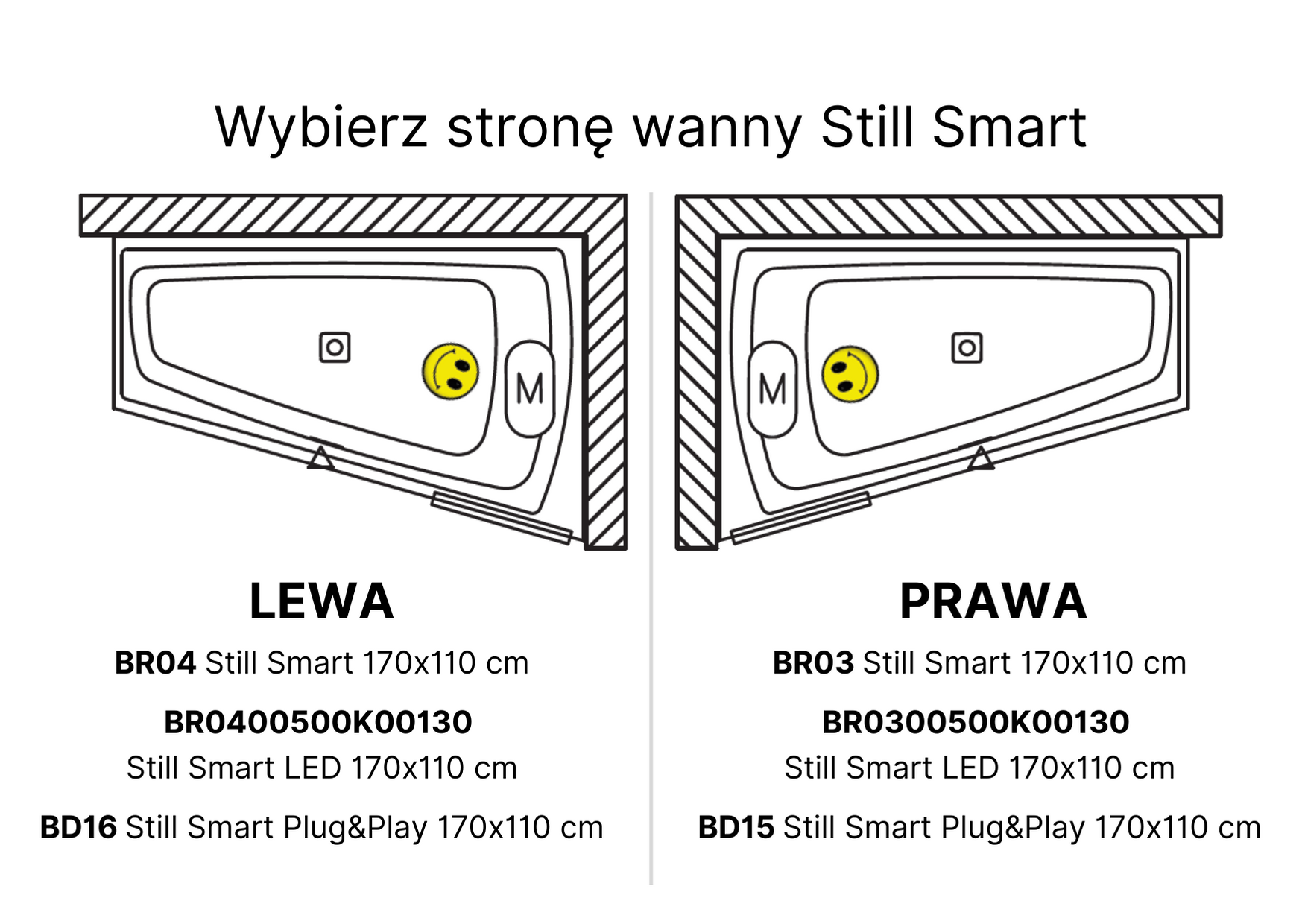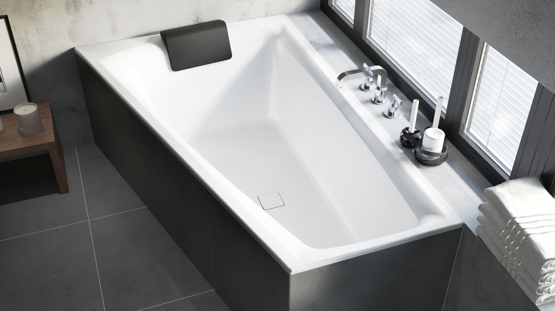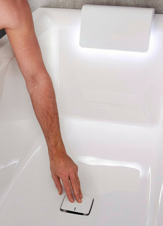 Stałe elementy wyposażenia wanny, takie jak odpływ i przelew, pełnią tutaj dodatkową funkcję dekoracyjną. Nadmiar wody wypływa przez wąską szczelinę przelewu. Przelew z wykończeniem w kolorze białym z połyskiem. Odpływ z pasującą kwadratową pokrywką i syfonem klik-klak w komplecie.Ponadto rant w wannie STILL SQUARE ma tylko 2 cm wysokości!