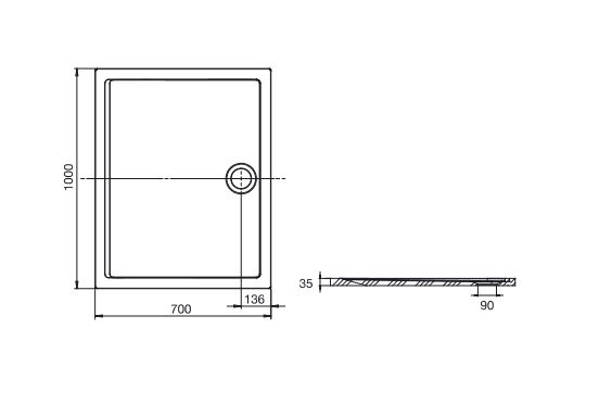 Brodzik zawiera w komplecie odpływ brodzikowy płaski z pokrywą chrom (30 l/min) PD5000165. Syfon czyszczony z góry.